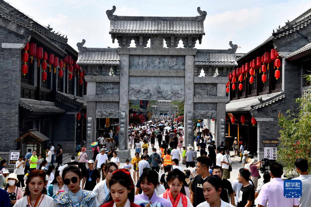 游客在山东省莒县莒国古城商业街区游览(7月24日摄)。新华社记者 郭绪雷 摄