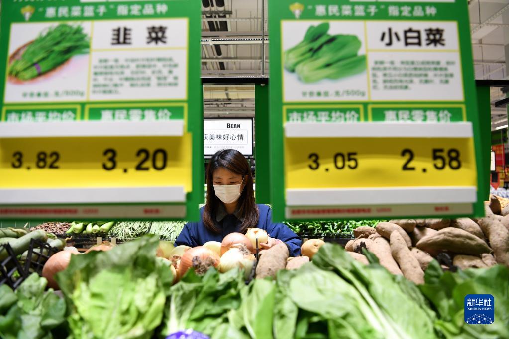 市民在安徽省合肥市经开区芙蓉社区一家超市选购“惠民菜”(11月7日摄)。新华社记者 刘军喜 摄