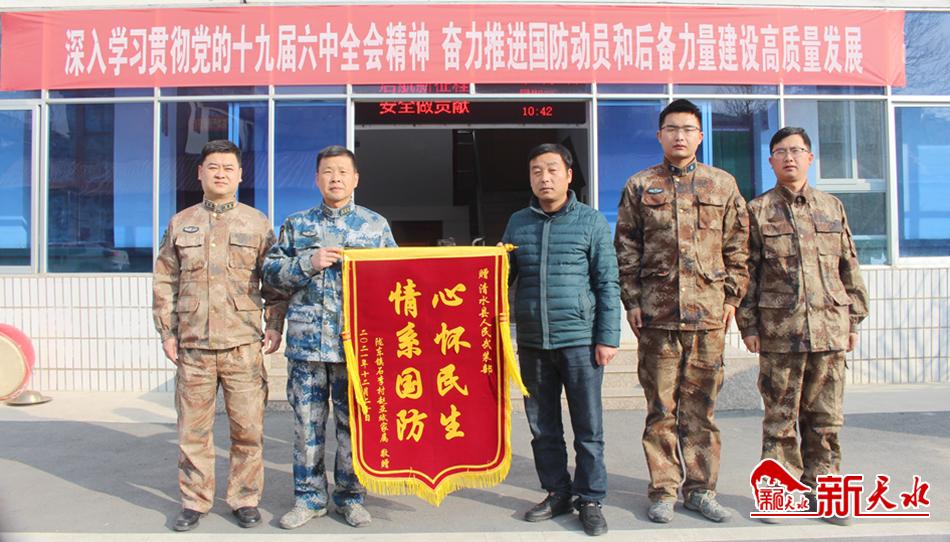新天水讯【记者王莹】12月28日,清水县陇东镇石李村应征入伍青年赵亚斌的家属,将一面写着“心怀民生情系国防”的锦旗送到清水县人武部,感谢人武部关心青年的成长成才,为赵亚斌圆了绿色军旅梦,帮他开启了人生新征程。
