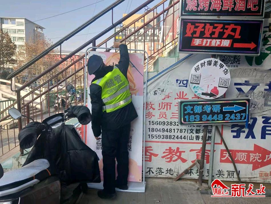 新天水讯【通讯员 靳雪萍】近日,秦州区执法局玉泉中队加大辖区市容环境综合整治力度,以良好的市容秩序迎接2022年的到来。
