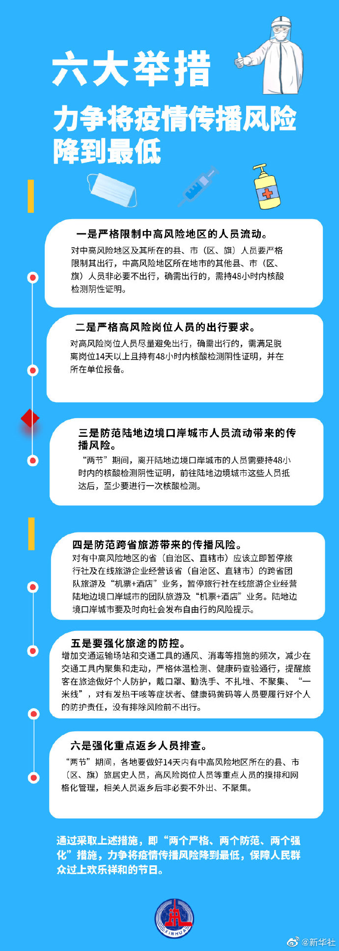 元旦、春节将至,国家卫健委日前召开国务院联防联控机制新闻发布会,在总结前期节假日期间疫情防控特点和处置经验的基础上,提出了在疫情形势总体平稳前提下,强化人员安全有序流动,主要措施包括以下六个方面。(记者李恒)