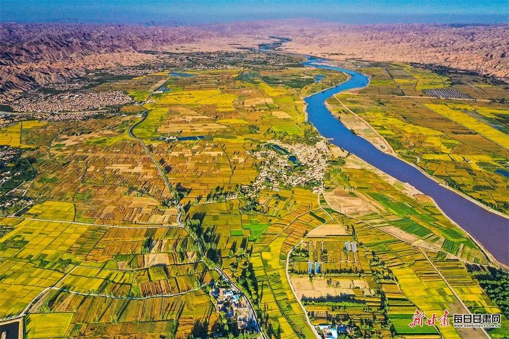 黄河中上游的白银市景泰县五佛乡和靖远县兴隆乡交界,稻谷飘香。新甘肃·每日甘肃网通讯员寇明灿/摄