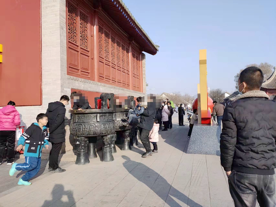 1月1日下午,一些小孩在伏羲广场的几口大鼎里玩耍,家长不仅熟视无睹,还帮助小孩进入大鼎,此举不但破坏了公物,也是一种不文明的行为。