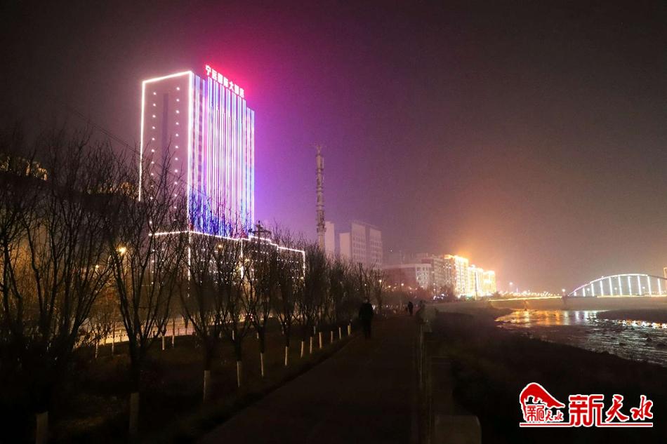 新天水讯【通讯员 王正平 管秋勇】一元复始,万象更新,2022年在人们的期盼中到来了。为营造喜庆、祥和的节日气氛,武山县城装扮一新,元旦当晚,渭水两岸流光溢彩、灯火辉煌,映照着万家灯火,煞是好看。