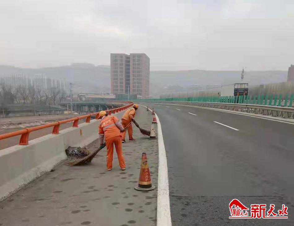 新天水讯【特约通讯员 胡泽庭】1月3日,天水公路事业发展中心高速公路养护所干部职工放弃休息,分三路对宝天高速、天定高速和十天高速天水段开展了日常巡查,还对中央分隔带、港湾式停车带和行车道的白色垃圾及路面抛撒物进行了及时清理,有效保障了元旦假期路容路貌整洁和道路畅通,为车辆行人提供了畅安舒美的高速公路通行环境。