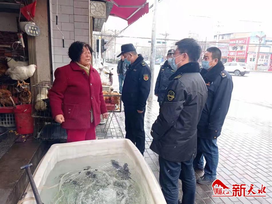 新天水讯【特约通讯员 黄少华】连日来,甘谷县市场监督管理局与甘谷县综合执法局组成联合执法工作组,对城区活禽水产宰杀交易占道经营行为进行集中整治规范,进一步提升城区公共卫生和禽类产品质量安全水平,构建卫生整洁的市容环境。