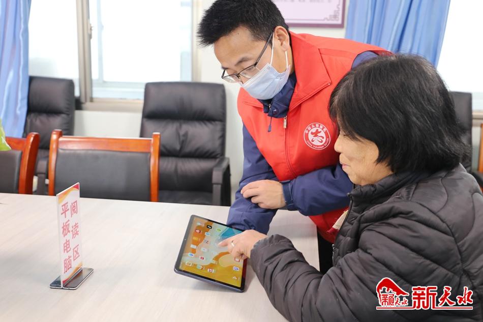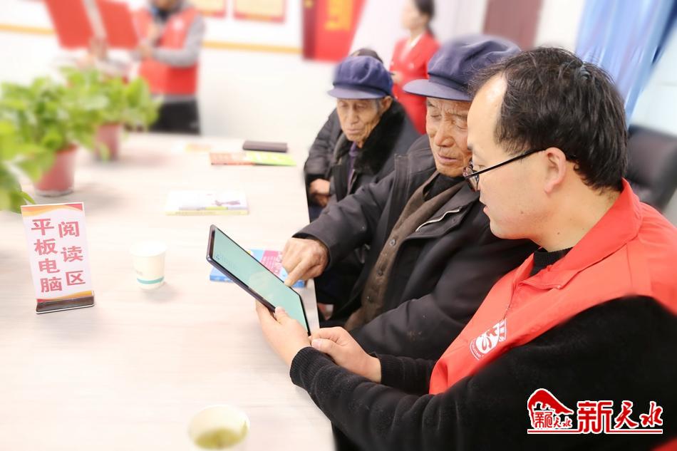 在阅览室里,七八个小朋友们正在志愿者的带领下,玩着积木,读着绘本。“娃娃们的爸妈都去外面打工了,平时都是我一个人带着。孩子缺少父母的陪伴,经常闷闷不乐。自从有了这个阅览室,娃娃们就有了玩耍和学习的地方,真心感谢政府和志愿者。”村民王凤祥看着孙子在志愿者的陪伴下开心地搭着积木,十分欣慰地说。在平板阅览区,牛福成老人正捧着平板看着新闻。“以前没见过平板,只会简单使用智能手机。志愿者用了三天时间教会我如何使用平板看新闻,最近几天我有空就来这里,了解当下的热点新闻,太方便了。”牛福成激动地说。