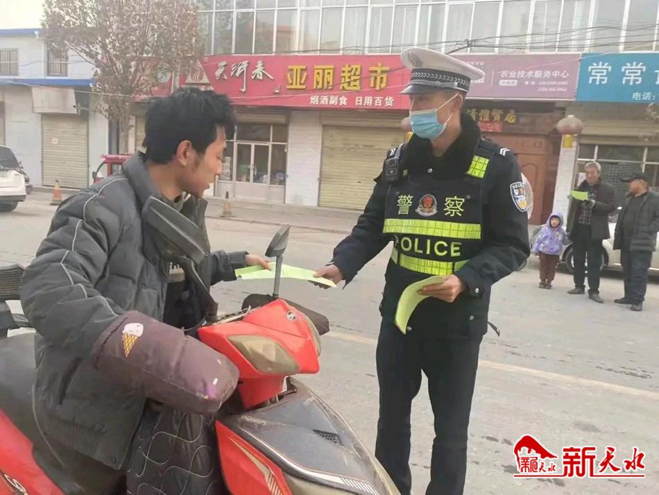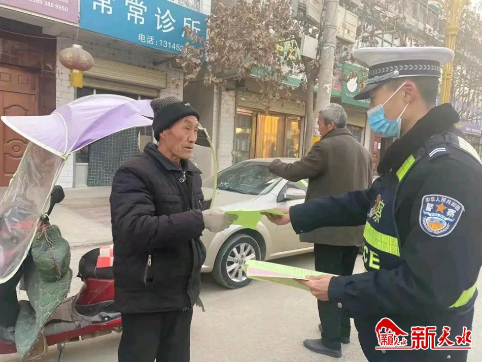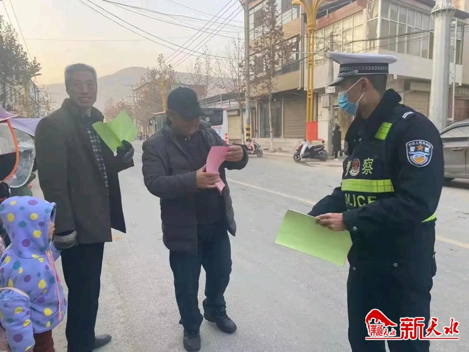 新天水讯 1月4日,秦安县公安局交警大队组织民警深入叶堡镇开展交通安全宣传教育活动,进一步提高广大农村群众的道路交通安全意识,有效预防农村道路交通事故的发生。