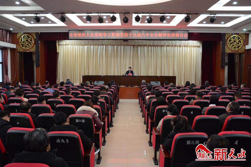 新天水讯【记者李欣桐】1月5日,天水市委常委、组织部部长张晓强在全市组织人社系统宣讲党的十九届六中全会精神。张晓强围绕学习领会习近平总书记在全会上的重要讲话和《决议》精神,从深刻领会全会的里程碑意义、准确把握全会的精神实质、全面落实全会的实践性要求等方面,结合工作实际,进行了阐述和解读。