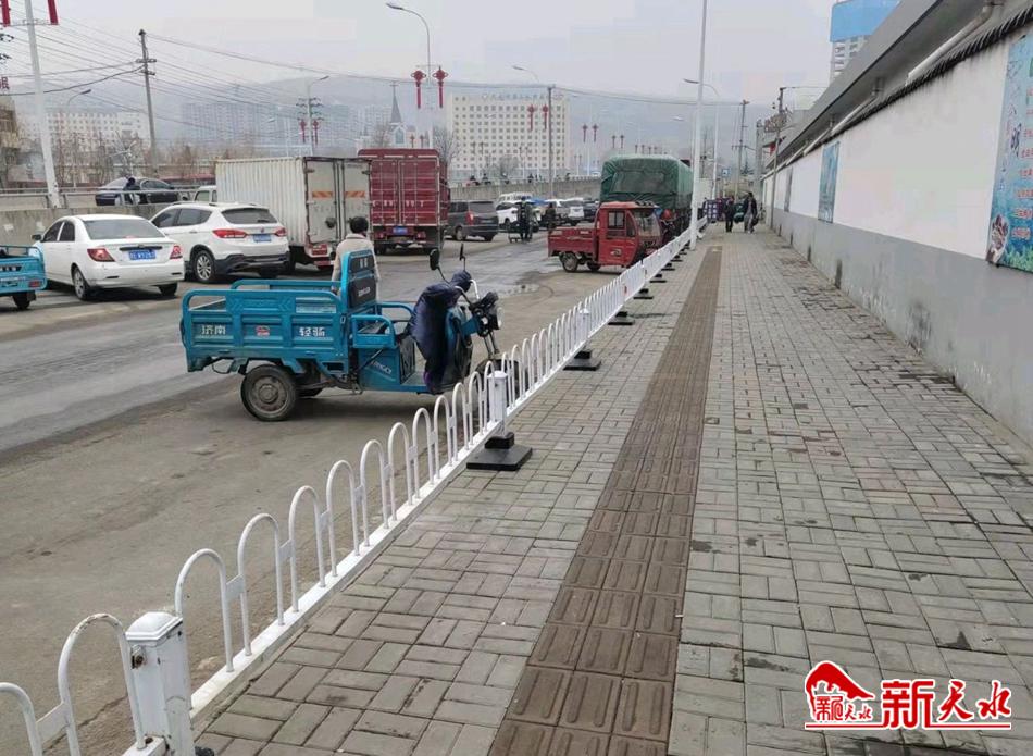 秦州区瀛池路果蔬批发市场周边批发水果蔬菜的人员较多,长期以来,机动车、非机动车乱停乱放问题也是这里管理的一大顽疾,车身一半停在路面上、一半压在人行道上,盲道被挤占,导致机动车、非机动车“任性”停放问题“久治不愈”,既影响了行人通行还严重影响了城市的市容市貌,给城市管理带来诸多难度。 针对这一现象,秦州区执法局天水郡中队对现场进行研判,并在人行道道沿上安装了护栏,使得长期“花样停车”的司机朋友们不再任性停放了。今后,该中队将继续强化宣传教育,定期不定期开展专项整治行动,坚持执法与管理同步推进,形成辖区机动车、非机动车整治的常态长效机制,给人民群众营造整洁、有序的出行环境。