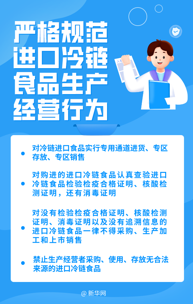 发布会上,市场监管总局食品经营司副司长党倩英介绍,市场监管部门严格落实国务院联防联控机制“人物同防”的工作要求,采取多种措施,严密防范新冠病毒通过进口冷链食品输入的风险。其中,严格规范进口冷链食品生产经营行为尤为重要。