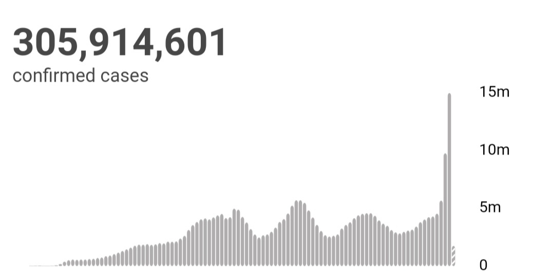 世卫组织:全球新冠肺炎确诊病例超3亿例