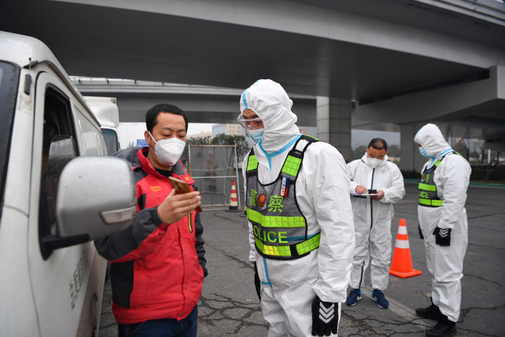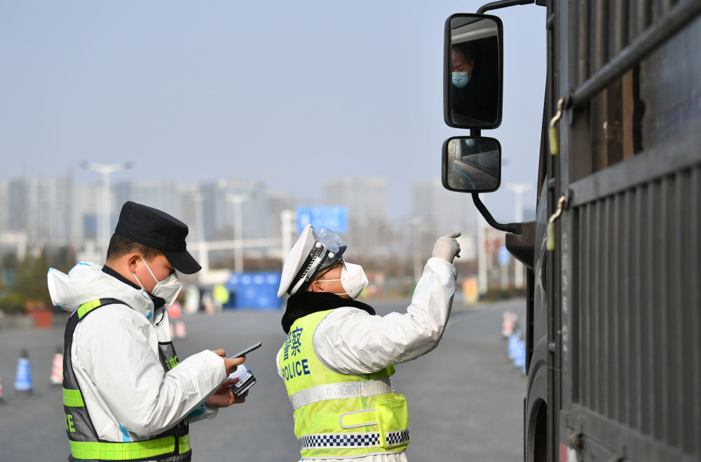 1月10日,西安市公安局浐灞生态区分局民警在西安市绕城高速新筑收费站查验驾驶员健康码。新华社记者 张博文 摄