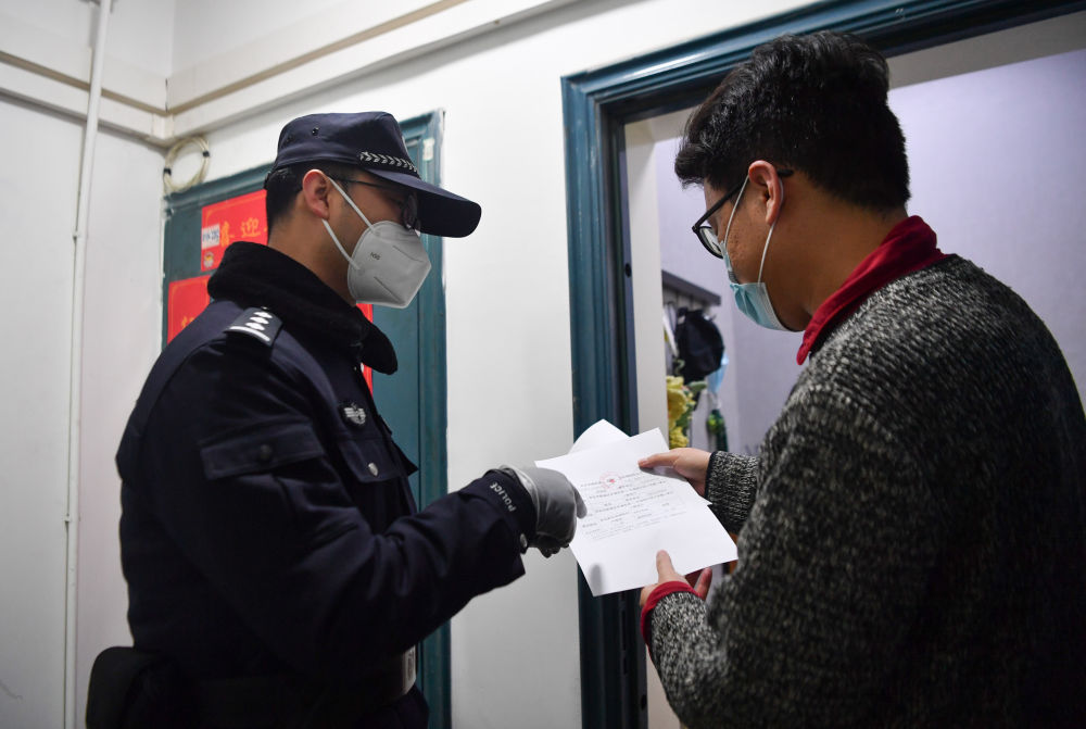 1月10日,西安市公安局浐灞生态区分局民警在负责执勤的社区向居民讲解疫情防控政策。新华社记者 张博文 摄