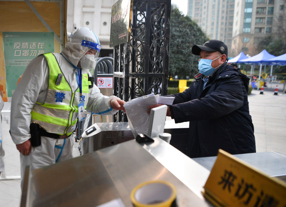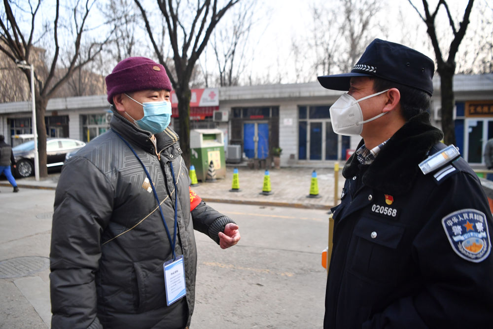 1月10日,西安市公安局新城分局民警在负责执勤的社区向居民讲解就医流程。新华社记者 张博文 摄