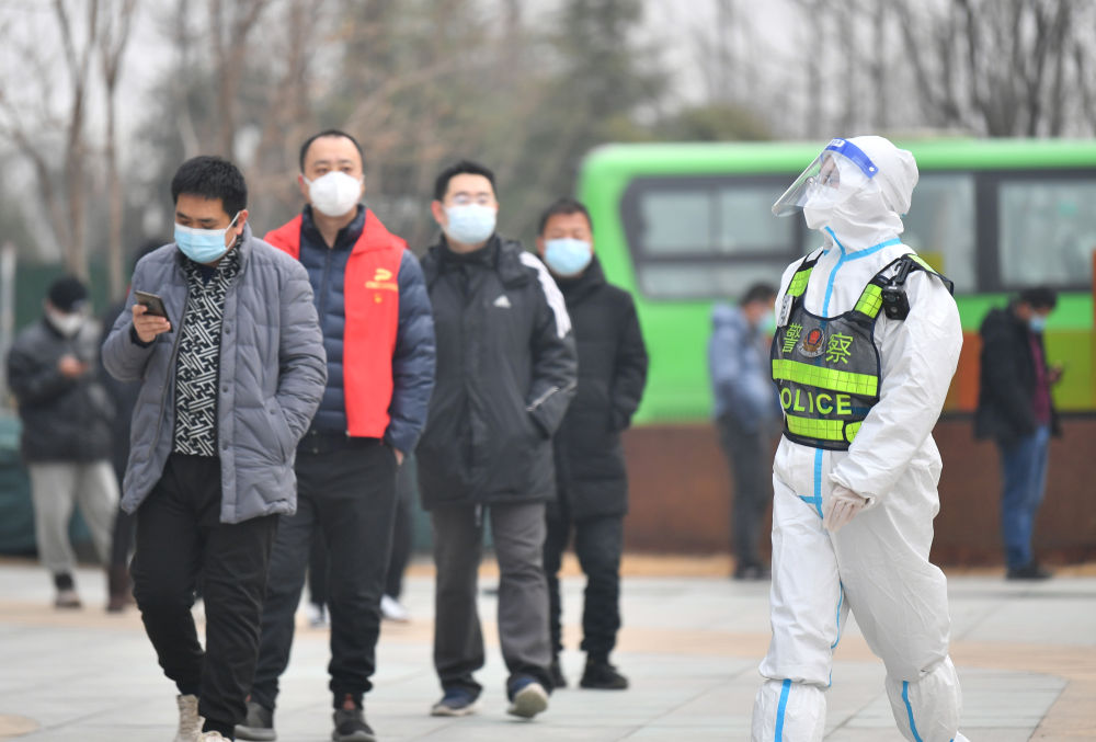1月10日,西安市公安局浐灞生态区分局民警在辖区内一处核酸检测点执勤。新华社记者 张博文 摄