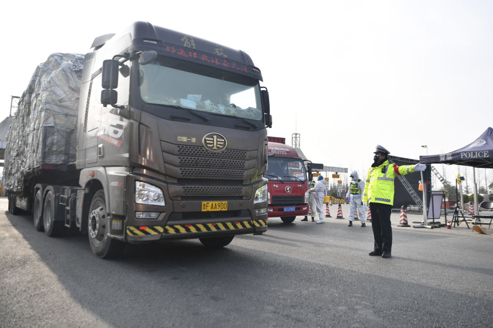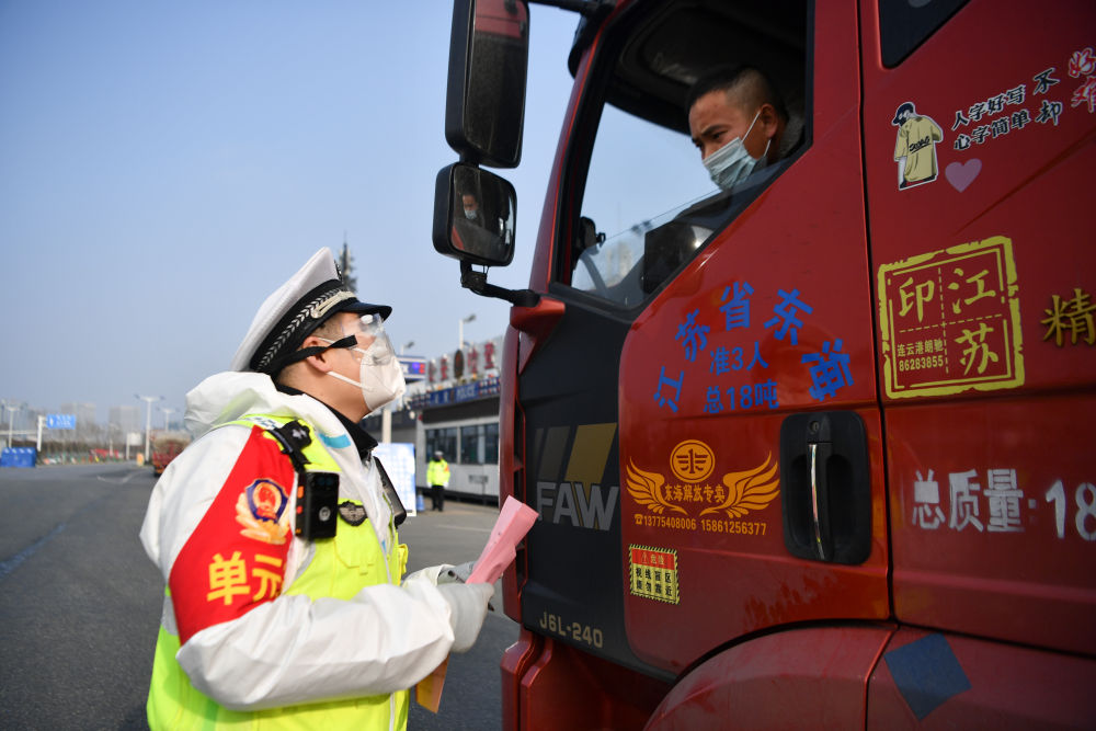 1月10日,西安市公安局浐灞生态区分局民警在西安市绕城高速新筑收费站查验车辆通行证件。新华社记者 张博文 摄
