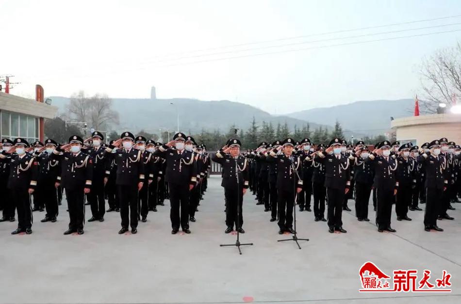 新天水讯【特约通讯员 李富军】1月10日早8时,天水市公安局隆重举行“践行训词、擎旗奋进”升警旗仪式,热烈庆祝第二个“中国人民警察节”,进一步坚定从警信念、振奋警心士气、鼓舞全警斗志,激励广大民警以更加强烈的政治担当忠实履行新时代使命任务。