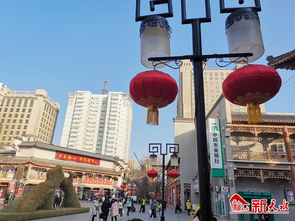 1月10是腊八节,进入腊八节之后,我们就开始准备年货,清扫房屋,准备年终祭祀,都是为了过年作准备的,因此有过了腊八就是年的说法。当日,记者在秦州区中华西路步行街两侧看到, 一个个火大红灯笼挂上街头,喜气洋洋,浓厚的年味扑面而来,将古城天水点缀得绚丽多彩,增添了几分古色古香的韵味,让冬日的天水越来越有味道。