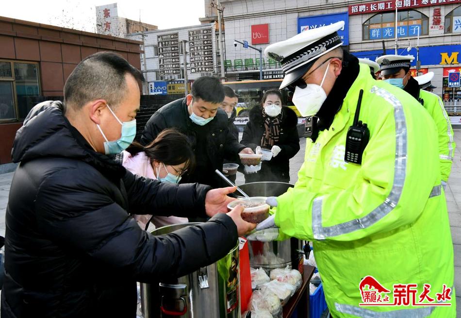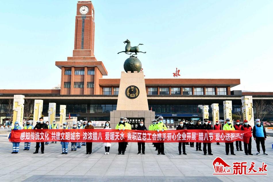 新天水讯【特约通讯员窦耀辉 杨晨】1月10日,是我国传统节日“腊八节”,麦积区总工会携手爱心企业——马玉林餐饮公司开展“腊八节”送爱心粥活动,为一线执勤的交通警察、城管队员、基层医务工作者、环卫工人和志愿者们送去了热气腾腾的腊八粥、菜夹饼,让他们在寒冬里感受到来自社会大家庭的温暖和关爱。