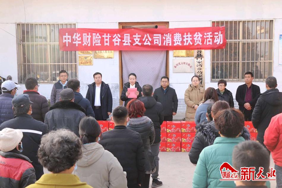 新天水讯【特约通讯员 王纯伟 王志俊】1月11日,中华财险甘谷县支公司在甘谷县白家湾乡苟家岘村开展消费扶贫活动。