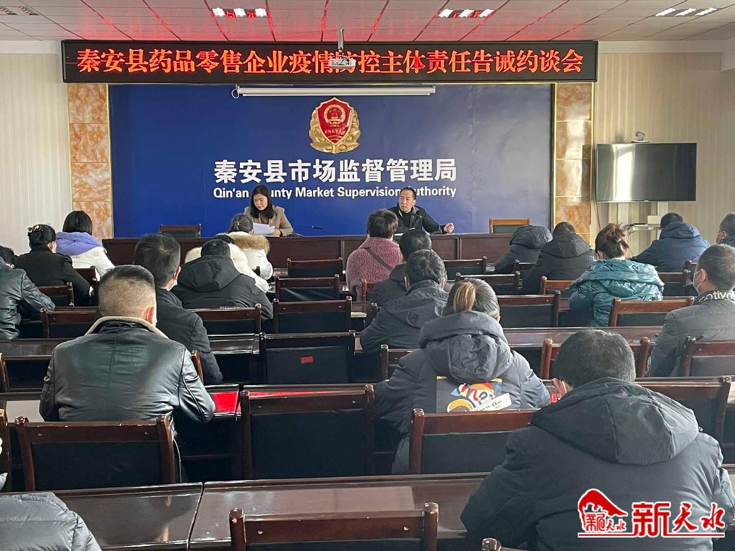新天水讯【通讯员 王顺芳】1月12日,秦安县市场监督管理局组织召开全县药品零售企业疫情防控主体责任告诫约谈会,进一步提升辖区药品零售企业思想认识,压实疫情防控主体责任,筑牢零售药店疫情防控屏障。