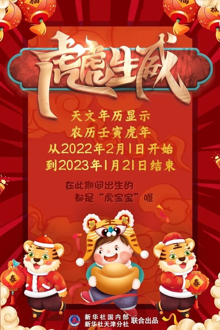 修立鹏同时也提醒,不管是农历平年还是农历闰年,属相都是从农历正月初一开始算起的,具体到农历壬寅虎年,在2022年2月1日至2023年1月21日之间出生的小孩都是“虎宝宝”。