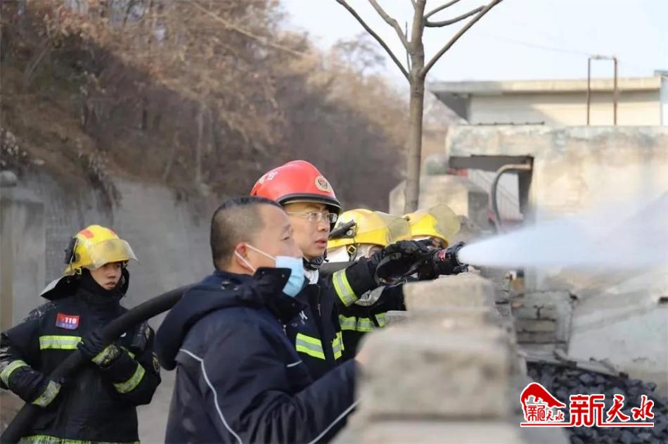 消防员到达现场后,发现现场有两辆液化天然气槽罐车,其中一辆槽罐车的车尾操作柜和周边房屋起火,全勤指挥部立即命令七里墩消防救援站使用水枪对周围起火房屋进行扑救,对槽罐车尾部进行冷却,并通知周围村镇疏散附近居民。