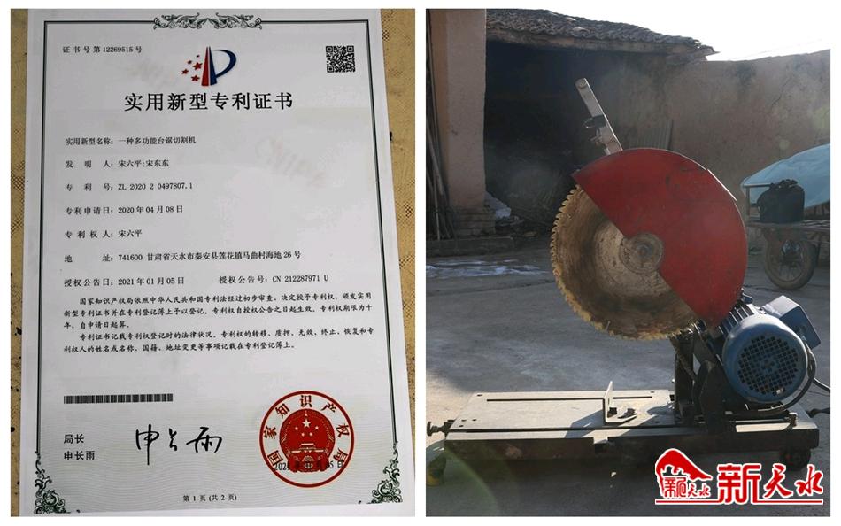 2017年,家中经济条件好了,儿子也成家了,他又有了想搞发明的这个念头。因视网膜色素变性导致视力极度下降的他并未因为别人的嘲笑而退缩,硬是靠着对梦想的执着,经过反复实践,终于在2020年把构思多年的多功能切割机做出了成品。这个切割机是将圆盘机、金属打磨机、割边机和切割机四种机械的功能合为一体,通过改装配件,可以切割钢材钢板、磨制金属,还附带了一个切割木板木材的功能。凭借这项发明,宋六平在2021年1月得到了他梦寐以求的国家专利证书。“获得国家专利以后,激发了我对发明创造的更大兴趣,圆了我多年发明的梦。”宋六平激动地说。 此后一年里,他先后又研制出了喷雾耕用机、两用剪锯和教学测绘多功能可变尺,这三项发明也都申请了国家专利。如今,宋六平被秦安县西川中学聘为“小发明、小制作”社团指导老师,课余时间指导热爱发明创造的学生们。在他和学生们的共同努力下,他们研制的5项实用新型产品全部报送参加了第五届天水市青少年科技创新大赛。