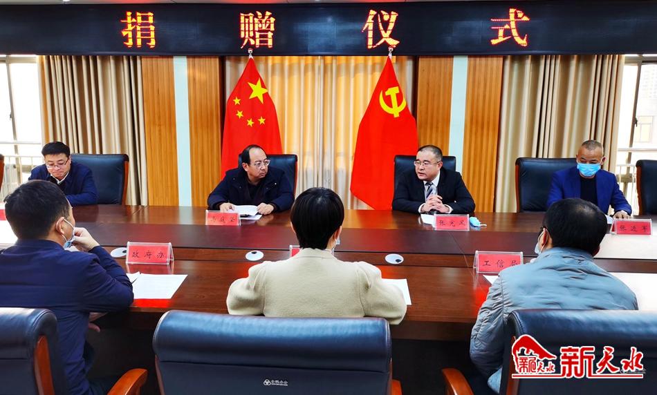 县委常委、宣传部部长马庭坚主持捐赠仪式,副县长马少雄、天水易德商贸城有限公司董事长张宪风出席仪式。马少雄在捐赠仪式上代表张家川县接收了捐赠资金,并对天水易德商贸城有限公司长期以来关注关心张家川县经济社会发展,为张家川县疫情防控、省级文明县创建等工作给予的大力支持表示感谢。