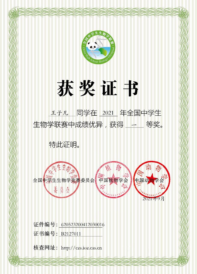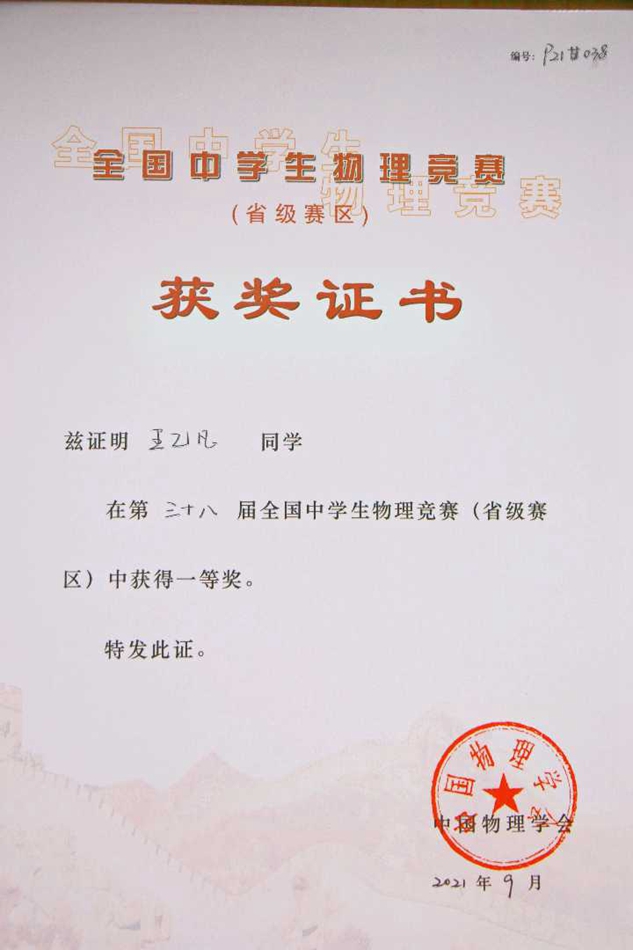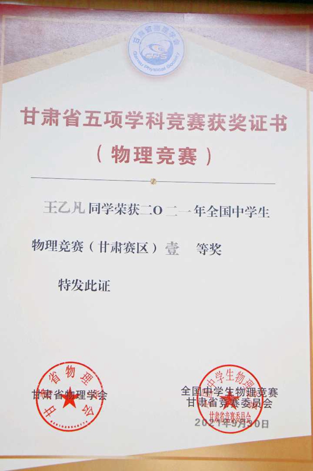 新天水讯【特约通讯员 王纯伟 王志俊】近日,2021年度高中数学、物理、化学、生物四大学科奥林匹克竞赛成绩揭晓,甘谷一中学子在竞赛中斩获多项奖项。