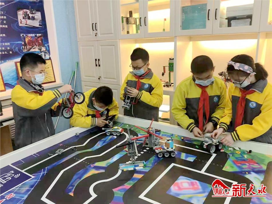 “科技馆分科协体验区和创新区。科学体验区的学生主要通过科学器材进行体验和观察,探求科学奥秘,激发科学兴趣;创新区分为创新发明、未来创客、智能机器人、微型机床工作坊等4个板块,一个板块就是一个社团,参加社团的学生可按照自己的爱好自行选择,实行走班制,每周星期四下午两节课为文明实践活动时间,有5名辅导教师辅导学生开展活动,科技馆一次就能容纳一百多名学生同时开展活动。”建三小学教师张惠文说,他所辅导的机器人课起步于2007年,是天水市首家智能机器人社团,也是学校社团的“王牌军”。