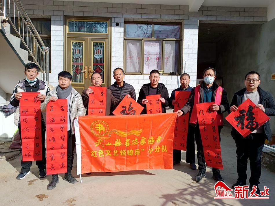 为进一步传承传统文化,延续文化基因,展现精神魅力,向广大群众传递新春的美好祝愿,1月15日,武山县书法家协会“红色文艺轻骑兵”鸳鸯小分队在鸳鸯镇包坪村、焦寺村和丁门村开展“送万福进万家”活动。