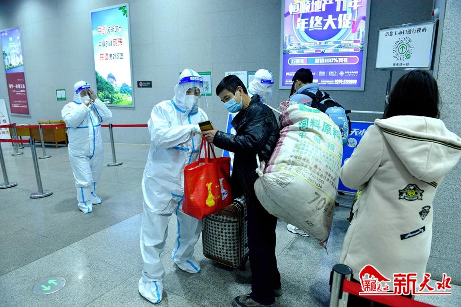 在当前国内外疫情防控形势依然严峻复杂情况下,天水南站和天水火车站严格落实各项疫情防控措施,强化站内通风、保洁、消杀工作,对进出站旅客开展体温检测、健康码查验,加强防疫宣传,为旅客营造安全舒适的乘车环境。进出站旅客均需查验健康码、行程卡,省外来天返天旅客还需提供48小时阴性核酸检测证明。