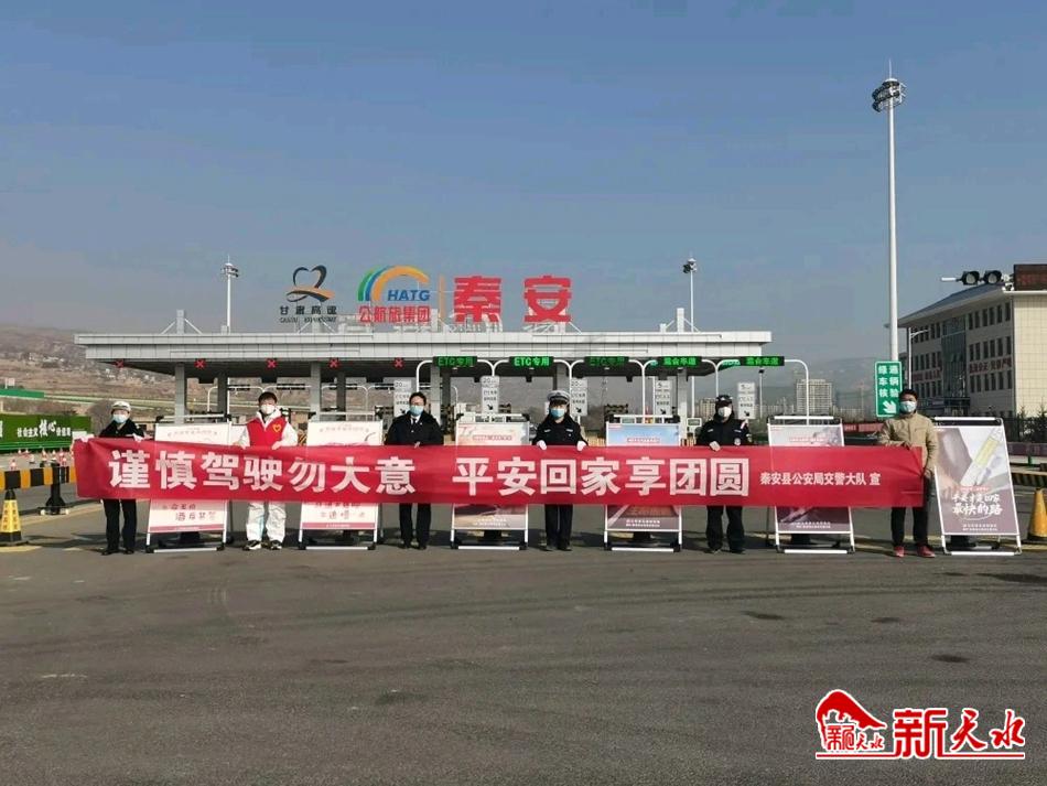 新天水讯 1月17日是2022年春运启动日,秦安县公安局交警大队民警深入辖区汽车站、高速公路出入口、国道口积极开展系列交通安全宣传活动。