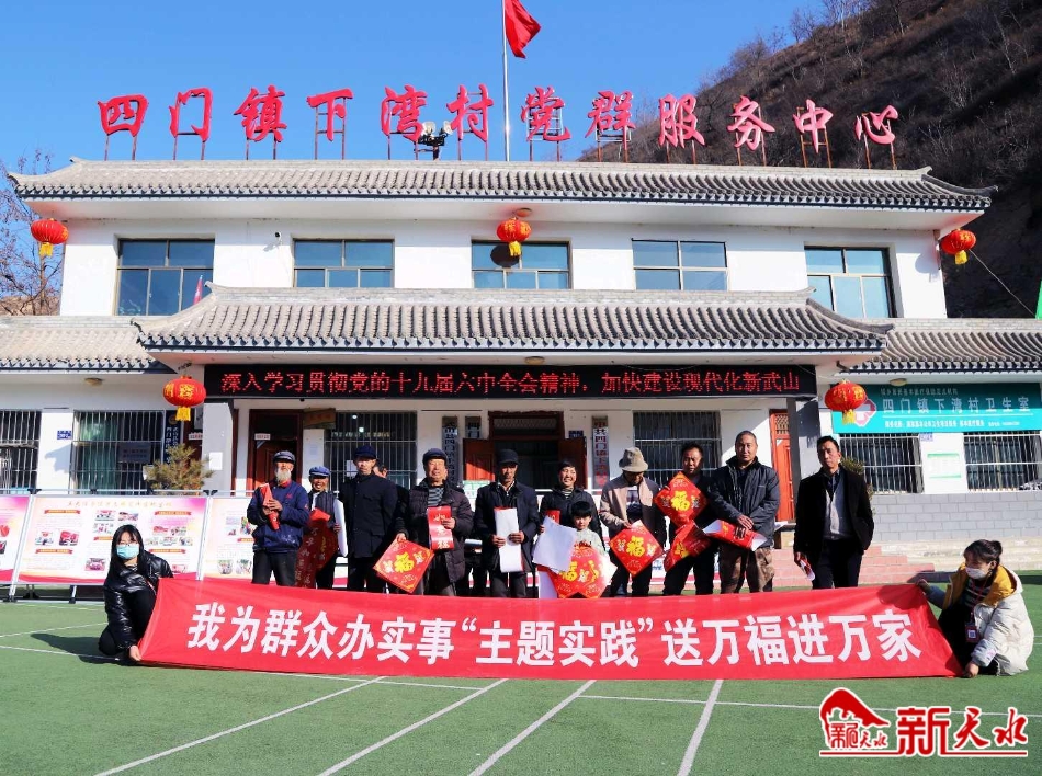 1月17日,武山县四门镇南坪村、三衙村、兰屲村、下湾村的群众在家门口收到了爱心人士送来的春联,提前感受到了新春的美好祝福。武山县融媒体中心、武山县文体广电和旅游局联合武山零距离生活网,积极开展“送万福进万家送春联”活动,通过送春联、送万福的方式,营造过年的喜庆气氛,寄托对新年生活的美好期盼,感受浓浓年味。 据悉,“送万福进万家送春联”活动将陆续在全县15个乡镇开展,共送出2万张“福”字和2万幅春联。