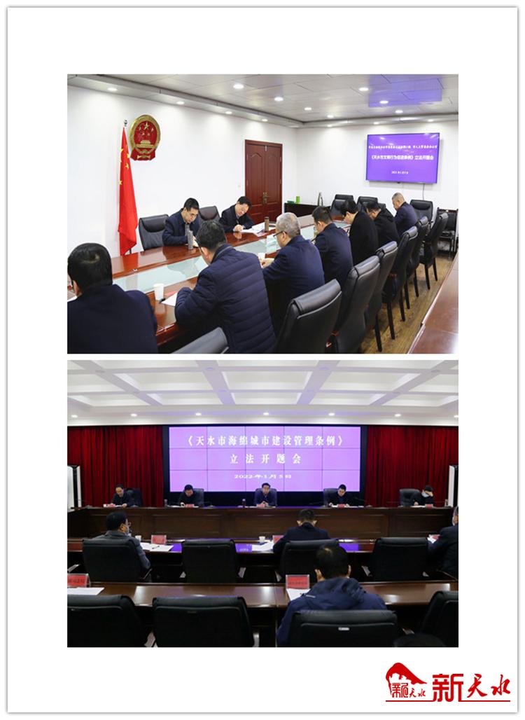 立法和规范性文件方面:天水市坚持立法为民,制定实施《天水市养犬管理条例》《甘肃省张家川回族自治县花儿保护传承条例》两部地方性法规,开展《天水市文明行为促进条例》立法工作,《天水市海绵城市建设管理条例》纳入2022年地方性法规立法计划。完成《天水市政府投资项目代建制管理办法》《天水市住宅专项维修资金管理实施办法》《天水市消防车道管理办法》《天水市城乡居民临时救助实施办法》等4件规范性文件合法性审核工作,审核县区政府和市政府部门行政规范性文件13件,切实以良法促进发展,保障善治。