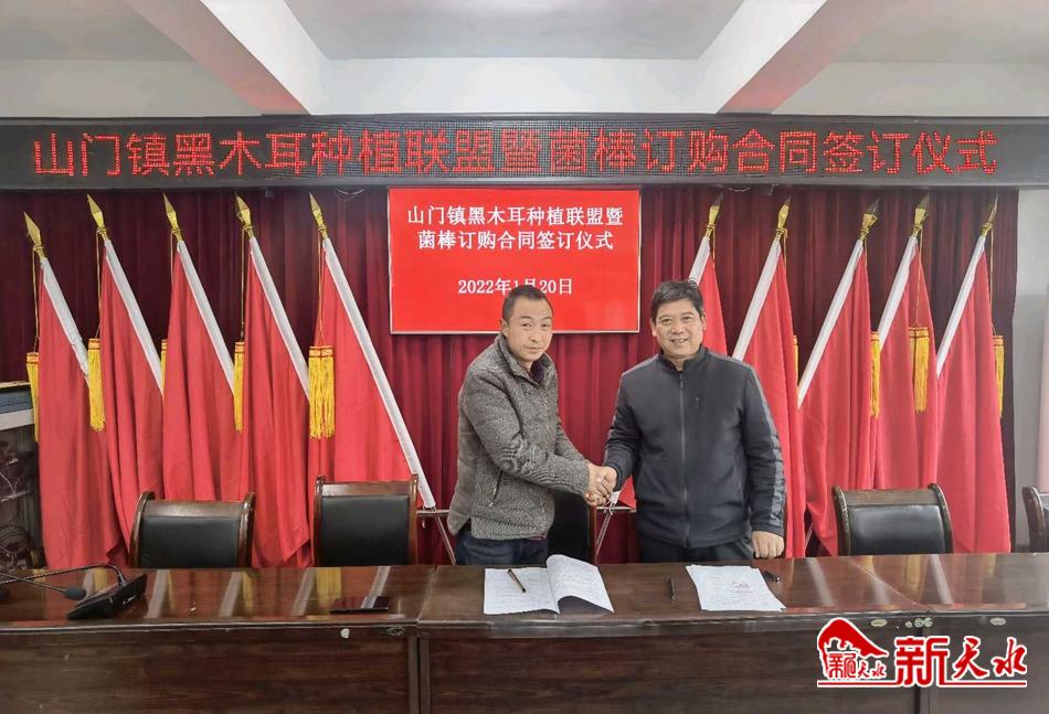 新天水讯【通讯员 赵南琦】 1月20日,徽县富康食药用菌农民专业合作社与清水县山门镇黑木耳种植联盟菌棒订购合同签订仪式圆满举行。