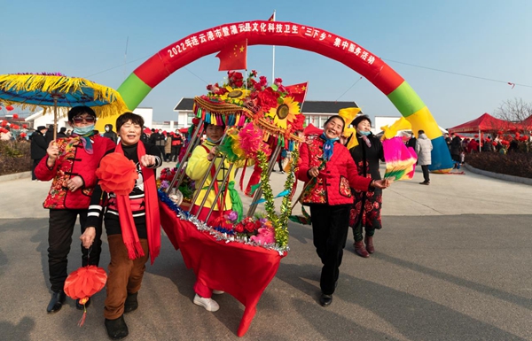 极具亮点的是,灌云县今年的“三下乡”活动现场增设了“先进典型”礼遇和非遗展示环节。很多农民表示,能现场与全国‘时代楷模’王仕花、‘中国好人’王英、‘奔跑哥’侍东亮、拾金不昧的‘快递小哥’王勇、‘捐髓救人’的崔浩冉互动,听他们讲那些充满温情和力量的‘灌云故事’,这是一笔丰厚的“精神年货”。“展演的很多非遗项目在农村都濒临失传,它们承载着祖祖辈辈的文化情怀和乡愁记忆,希望我们的后辈能承接起非遗传承之棒,赓续农业文明的千年根脉。”(夏兴俭 卞小敏)