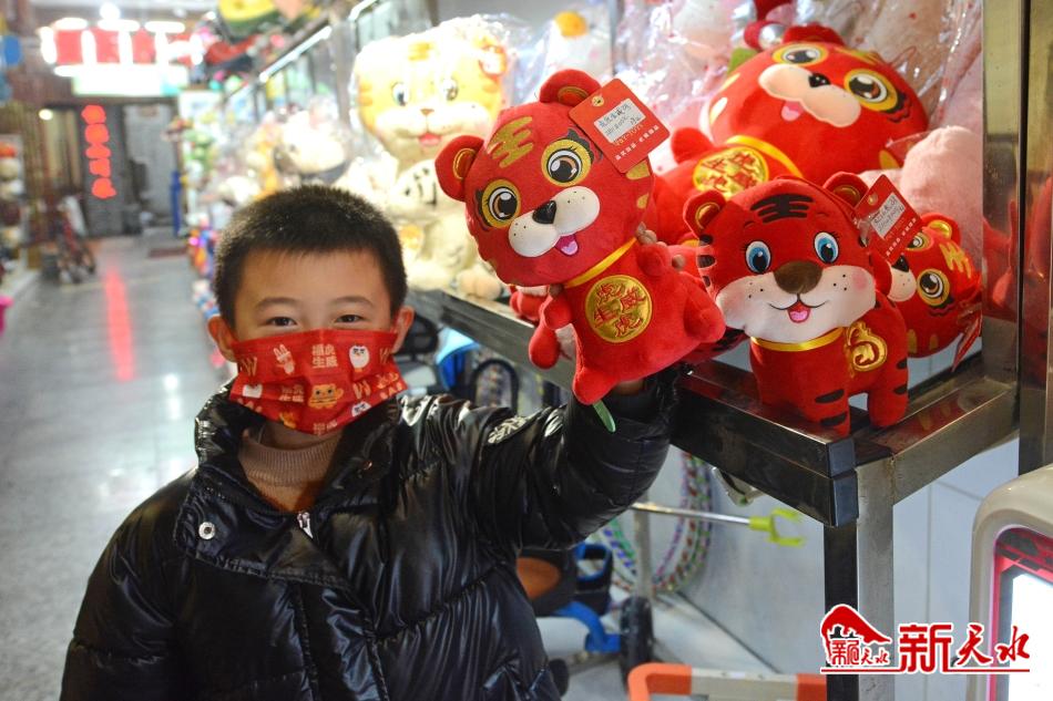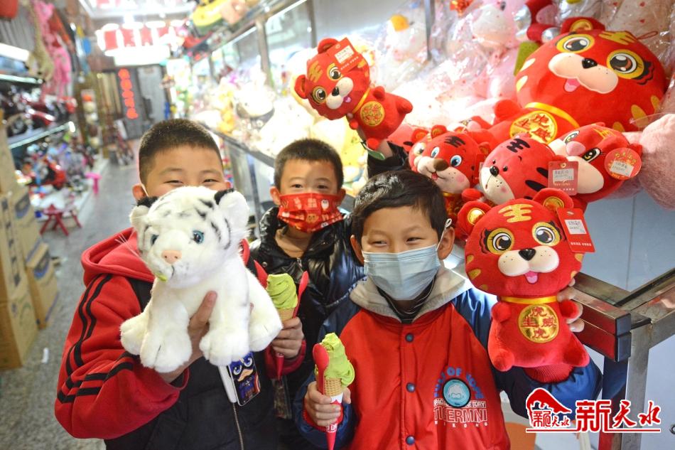 1月21日,孩子们在秦州区一家玩具店选购卡通虎毛绒玩具。农历虎年春节临近,以虎为主题的毛绒玩具、饰品等受市民青睐,走俏市场。新天水记者 孙镇 摄