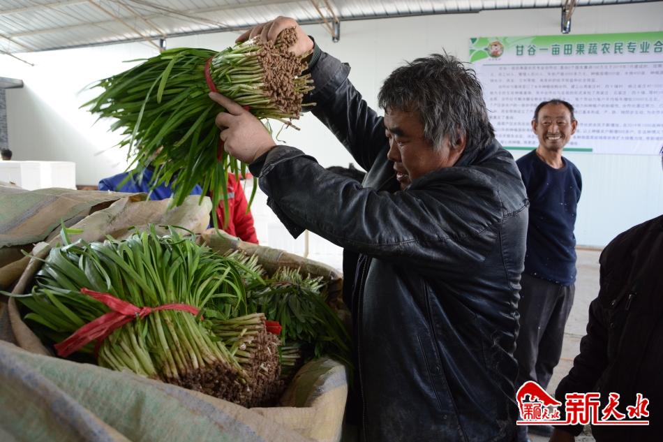 燕虎林的韭菜以每斤1.6元的价格被合作社收购,装箱后送上发往新疆乌鲁木齐的车。合作社负责人燕定海说:“这一车韭菜有11吨,全部发往新疆乌鲁木齐的定点超市,在那里将以每公斤5元的价格销售。我们甘谷一亩田果蔬合作社建立了以燕家庄、四十铺、杨汪家村1000亩无公害蔬菜基地五处,其中1000亩用于种植韭菜。合作社吸纳60多户农户,每户每年平均可增收20000元。”
