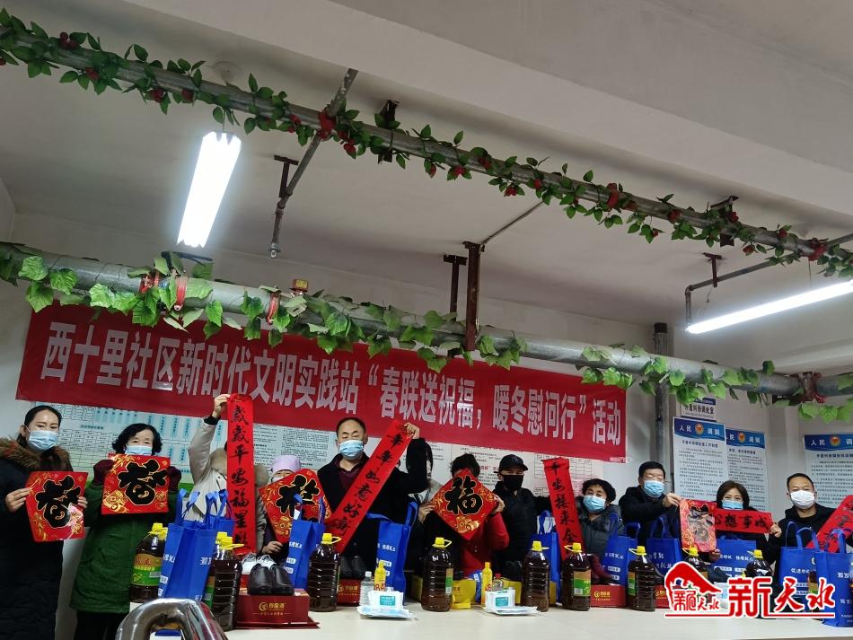 在2022年新春佳节到来之际,为了感谢志愿者的辛勤付出,让他们切实感受到党的关怀与温暖,天水郡街道西十里社区组织开展了慰问疫情防控志愿者暖心行动,为他们送去棉鞋、食用油、春联以及防疫爱心包等物品。在表达新春祝福的同时,叮嘱他们一定做好保暖和自我防护,共同携手筑牢免疫屏障,迎接春天的到来。