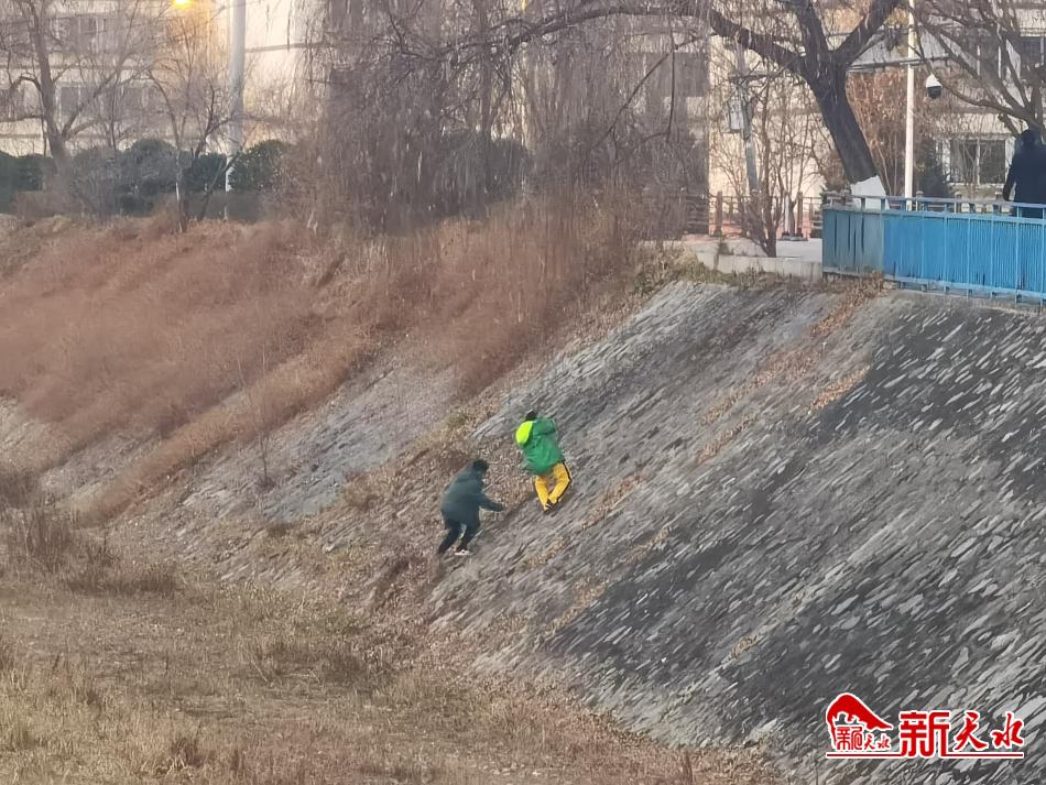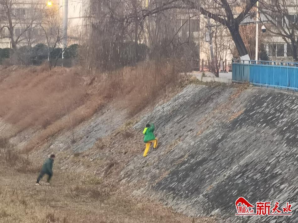 1月25日,两个“熊孩子”在秦州区罗峪河堤上跑上跑下,存在安全隐患。寒假期间,希望家长看护好孩子,让他们安全度过假期。