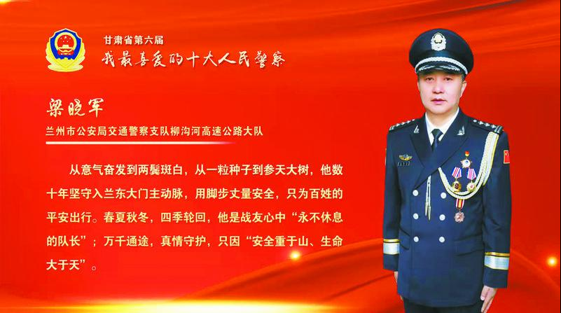 梁晓军,男,53岁,中共党员,现任兰州市公安局交通警察支队柳沟河高速公路大队大队长,三级高级警长。先后荣立个人二等功1次、三等功1次。