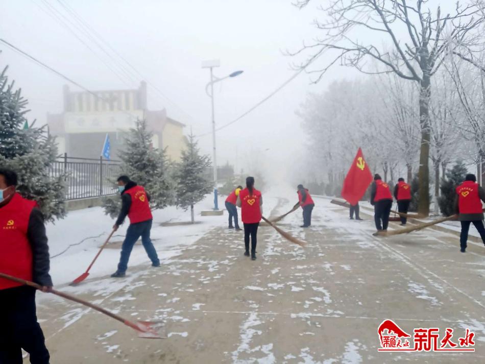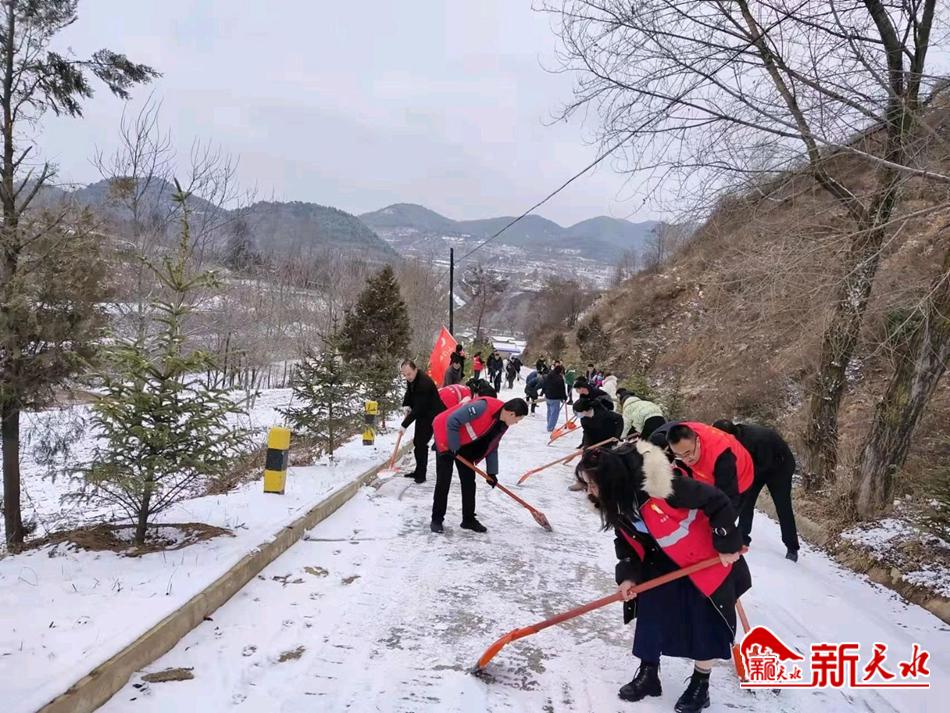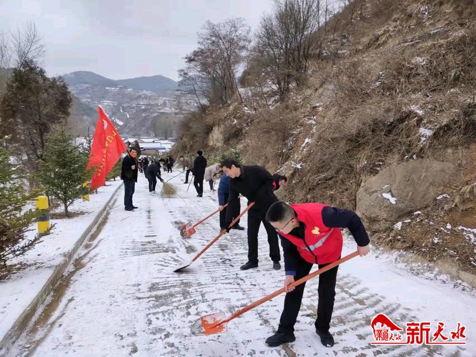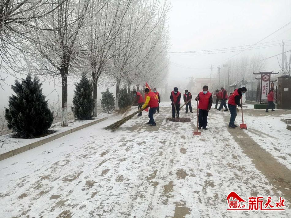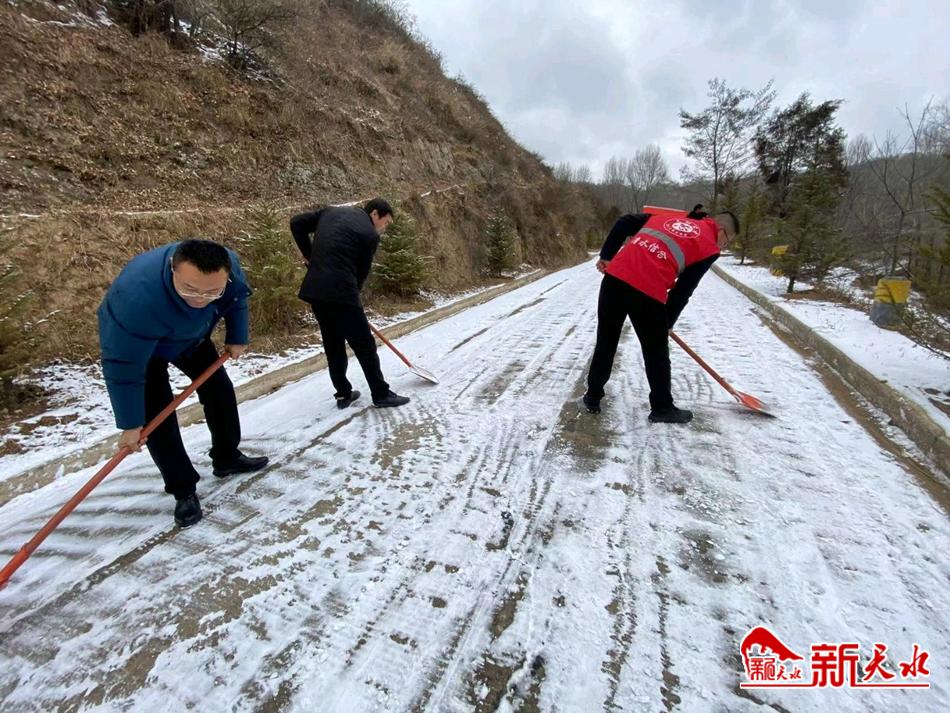 新天水讯 1月24日,清水县山门镇新时代文明实践志愿服务队开展除冰扫雪志愿服务活动,保障全镇道路交通安全,方便群众出行。