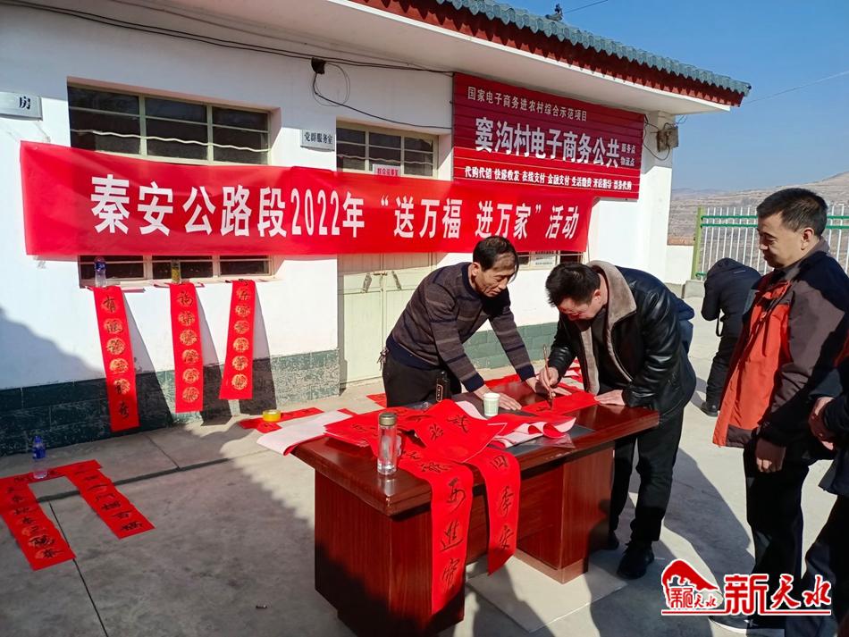 春节将至,秦安公路段积极组织开展“献爱心 送温暖”慰问帮扶活动。他们给帮扶的叶堡镇窦沟村低保户、困难户送去了米、油等生活物资,组织书法爱好者在帮扶村开展“送万福 进万家”活动,现场创作书画、书写春联,为窦沟村村民送去新年祝福。