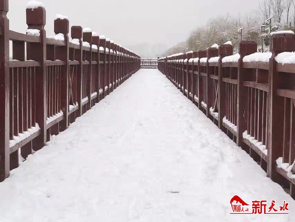 新天水讯【特约通讯员吴雪镕 姚苗】小年刚过,一场纷纷扬扬的大雪相约麦积,一座城市,一场雪景,大雪翩然落无声…… 如果你错过了春日的桃花流水,夏日的满架蔷薇,那你一定不能错过麦积的冬日雪景。与三两好友一起吟诗赏雪,踏雪寻梅。在麦积,山是雪山,河是冰河,小小白羽毛,片片落梨花。有了风中纷纷扬扬飘落的雪花 ,桥上的行人车辆就像是一幅幅淡雅的图画 。洁白梦幻的景象,吸引了大批市民前来赏雪打卡,公园里悠闲散步的老人,桥下与雪花共舞的阿姨,小径上其乐融融拍照的一家……无一不是最美的风景,如果你也喜欢这样的麦积,不妨在冬日雪花飘扬之时出门,踏雪,游麦积。