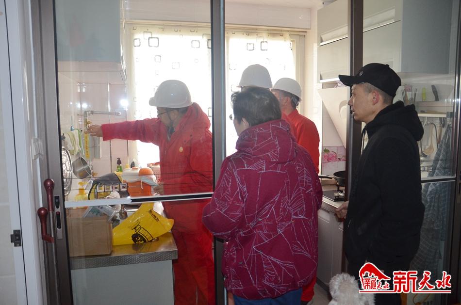 当天下午,天水昆仑燃气公司分组对城区燃气管道、工商业用户以及居民小区进行安全检查。在天颐园康养居燃气锅炉房、食堂后厨,检查人员一边检查燃气设施,一边与锅炉房、食堂工作人员进行交流,宣传讲解燃气安全规范、安全用气注意事项。在天水卷烟厂燃气锅炉房,检查组不仅查看了燃气设施运行情况,对调压箱柜日常巡检落实情况进行了重点核实,要求安检人员岗位履职到位,不仅要到现场检查,还要注意能不能发现问题,能不能解决和排除风险,将安全工作真正做到细处,落到实处。检查组随后又来到星火家园小区,在了解到这个小区已经通上气后,检查组表示:“我们兑现了年前让小区居民用上天然气的承诺,今后要用实际行动为群众办实事。”