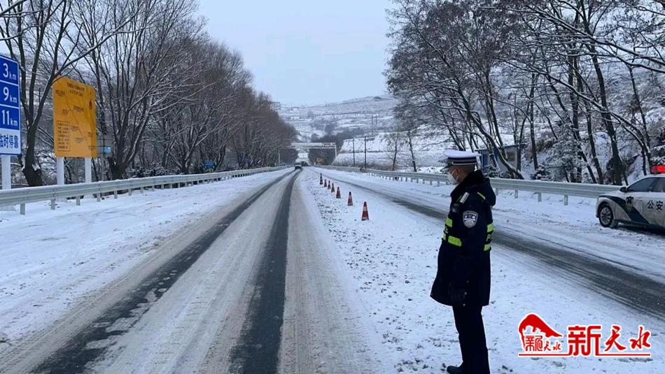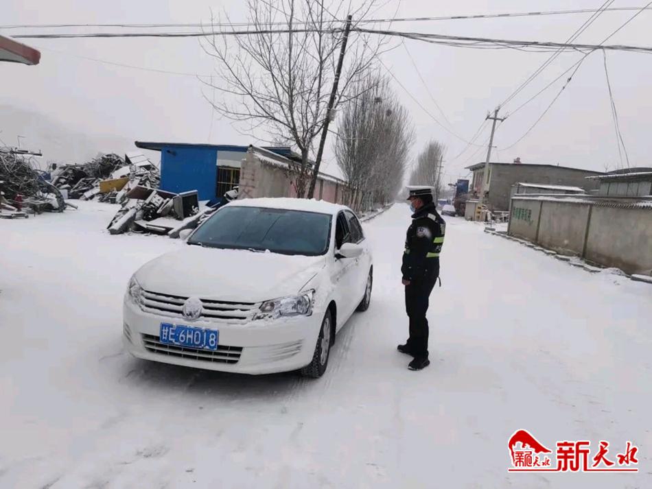 新天水讯 近3天来,为确保大雪天气条件下全县道路交通安全,保障人民群众生命财产安全和安全出行,严防交通事故发生,秦安县公安局交警大队第一时间启动恶劣天气应急预案,全体民协警迅速吹响集结号,全警齐上路,全力以赴保畅通、安全。