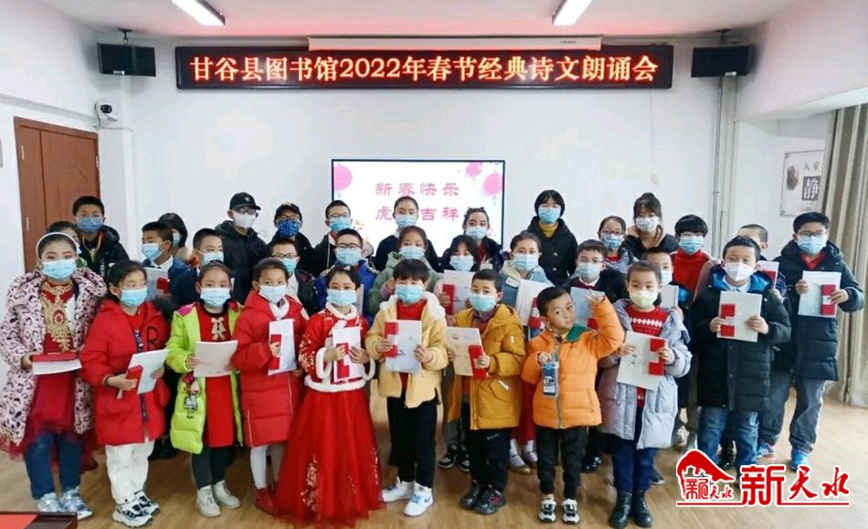 新天水讯【通讯员 康想珍】 1月27日,由甘谷县文旅局主办、县图书馆承办的2022年春节经典诗文朗诵会在县图书馆多媒体室举行。朗诵爱好者、文旅局全体工作人员及社会各界读书爱好者共计80余人参加了朗诵活动,进一步推进全民阅读活动深入开展,营造喜庆、祥和节日文化氛围。